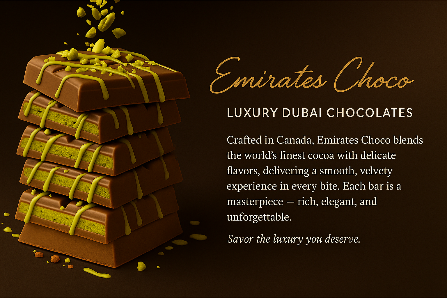 "Absolutely delicious! Pistachio drizzle and kunafa inside make it uniquely Dubai."